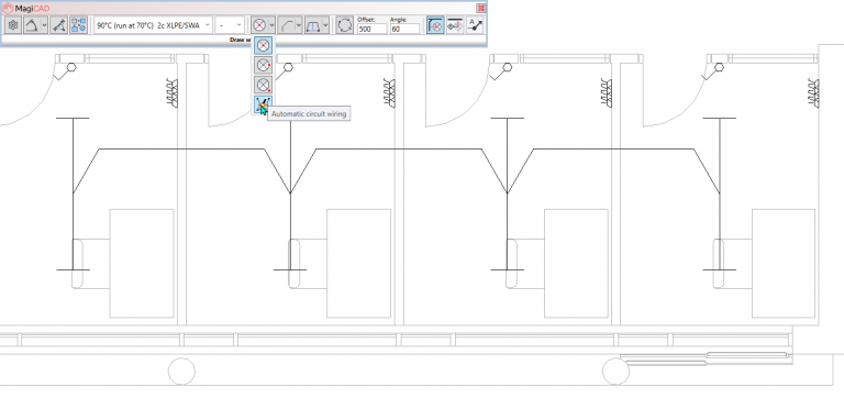 In addition, an automatic circuit wiring option can be used to automatically draw wire routing between all the devices in a circuit. You can toggle between different routing alternatives and change the line type if needed.